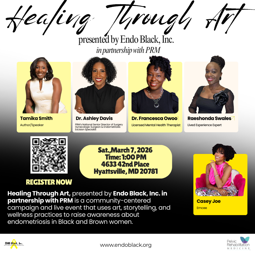 “I am excited to partner with PRM on the Healing Through Art event to highlight Endometriosis Awareness Month,” said Lauren R. Kornegay, Executive Director of Endo Black, Inc. “This event focuses on self-care, wellness, and mental health in relation to endometriosis, and we’re thrilled to host a conversation that includes a mental health therapist, a specialist, and lived experience experts. It’s time to recognize endometriosis as a full-body disorder that affects not just the womb but mental health as well. The time to heal is now.”